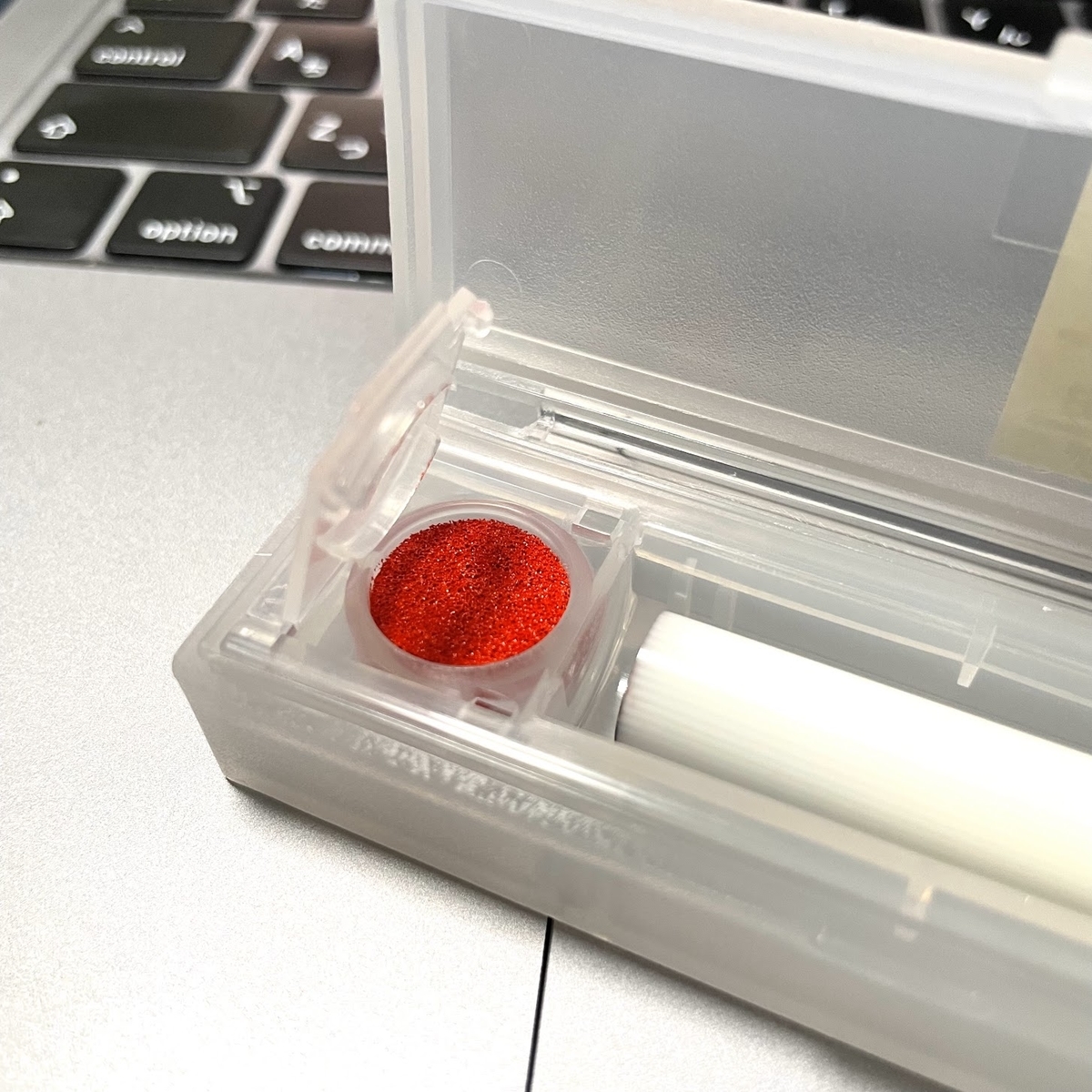 そこで最初に買ったのがこれです。「印鑑ケース」クリア・朱肉付き